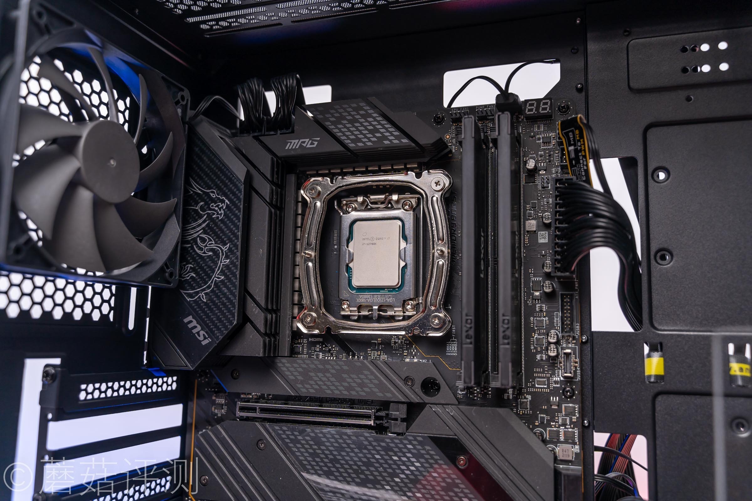 ▼处理器是12700K,主板是微星的Z690 CARBON 暗黑主板,这块主板的颜值还是非常漂亮的,供电部分有完整的金属散热件覆盖,且上面还有一些黑色的碳纤维、微星的龙盾LOGO装饰,颜值很漂亮。