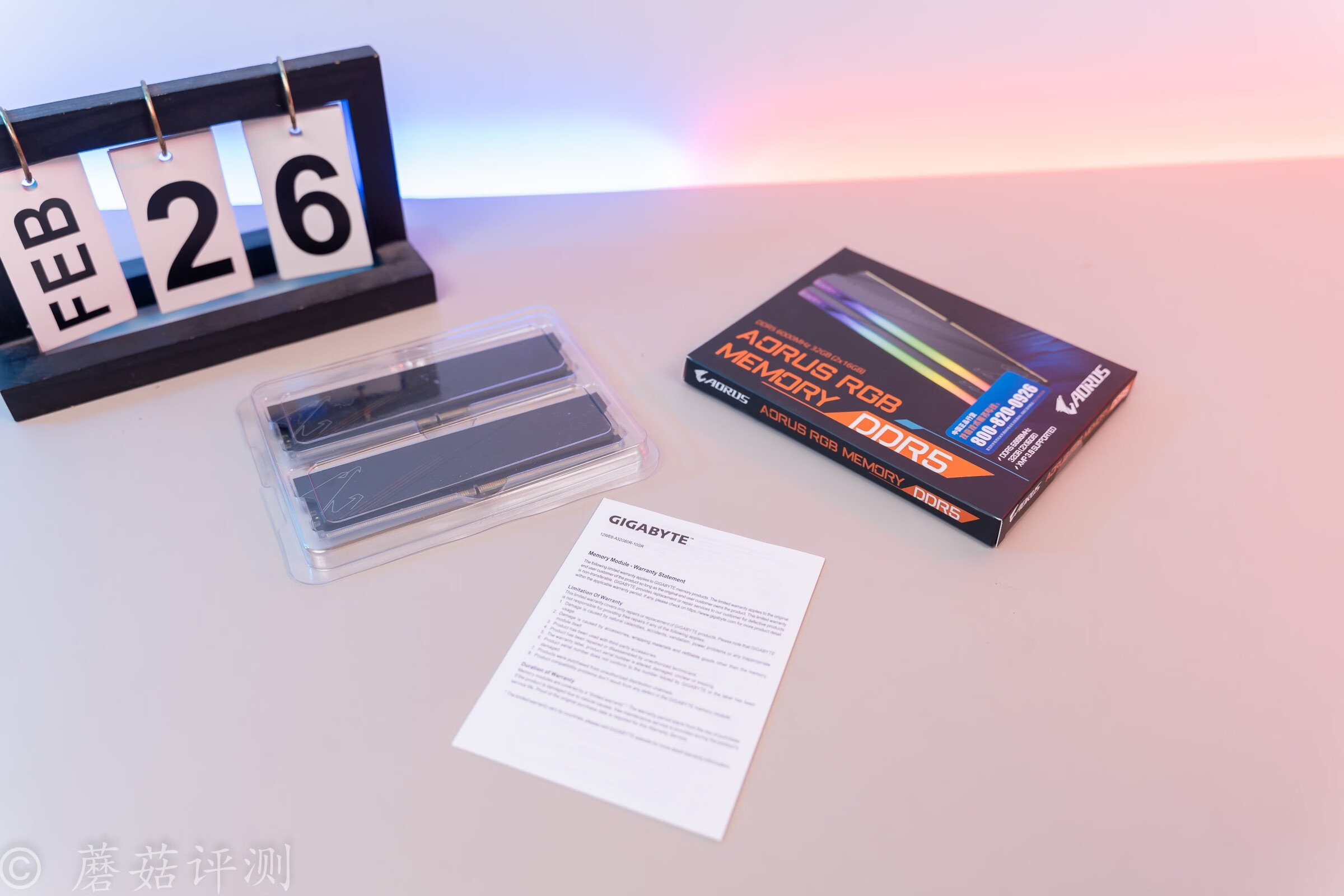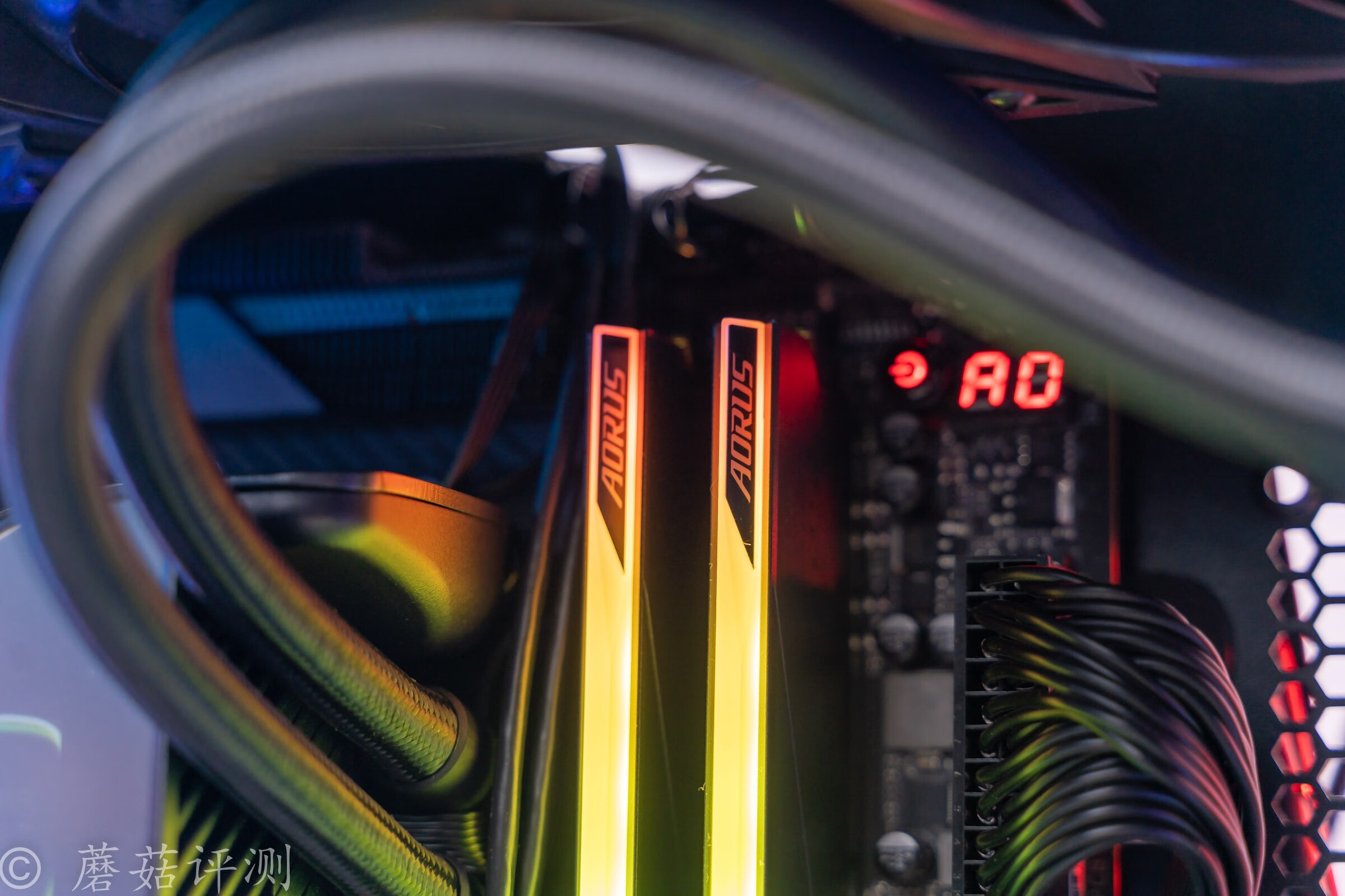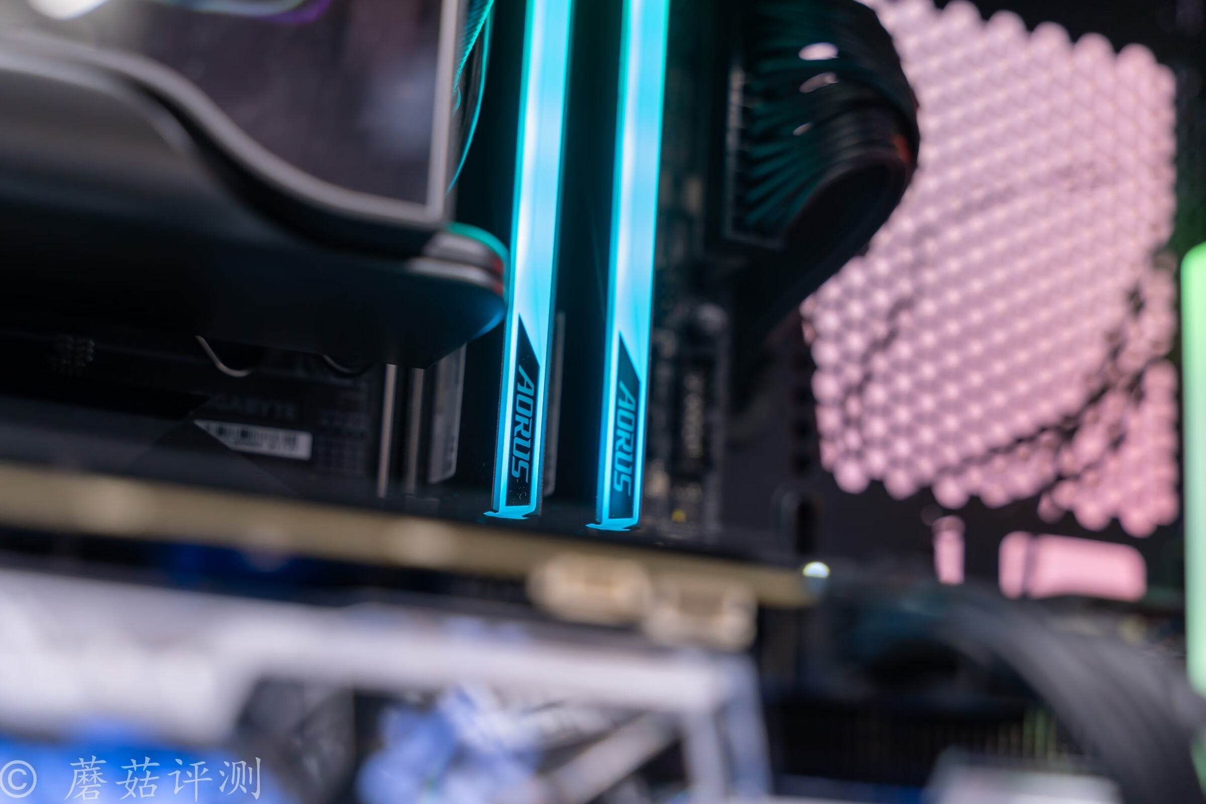 蘑菇之前开工作室的那个朋友,就入手了一套高频的DDR5内存,技嘉的AORUS RGB DDR5 6000MHz内存,性能外观都非常不错。