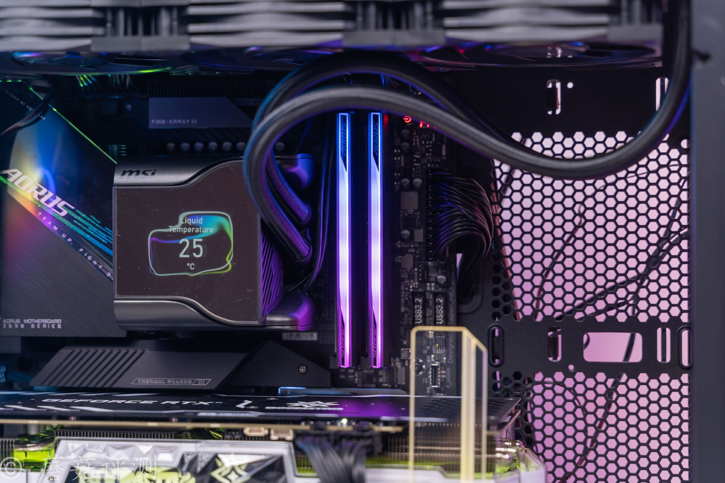 技嘉的这套RGB DDR5 6000MHz内存还是非常不错的,内存的颜值非常漂亮,马甲很厚实,内存的RGB灯带也很有设计感,颜值很漂亮。并且在保证颜值、散热的情况下,其马甲的高度控制的十分优秀,安装兼容性很高,搭配一些风冷散热,也能轻松兼容。