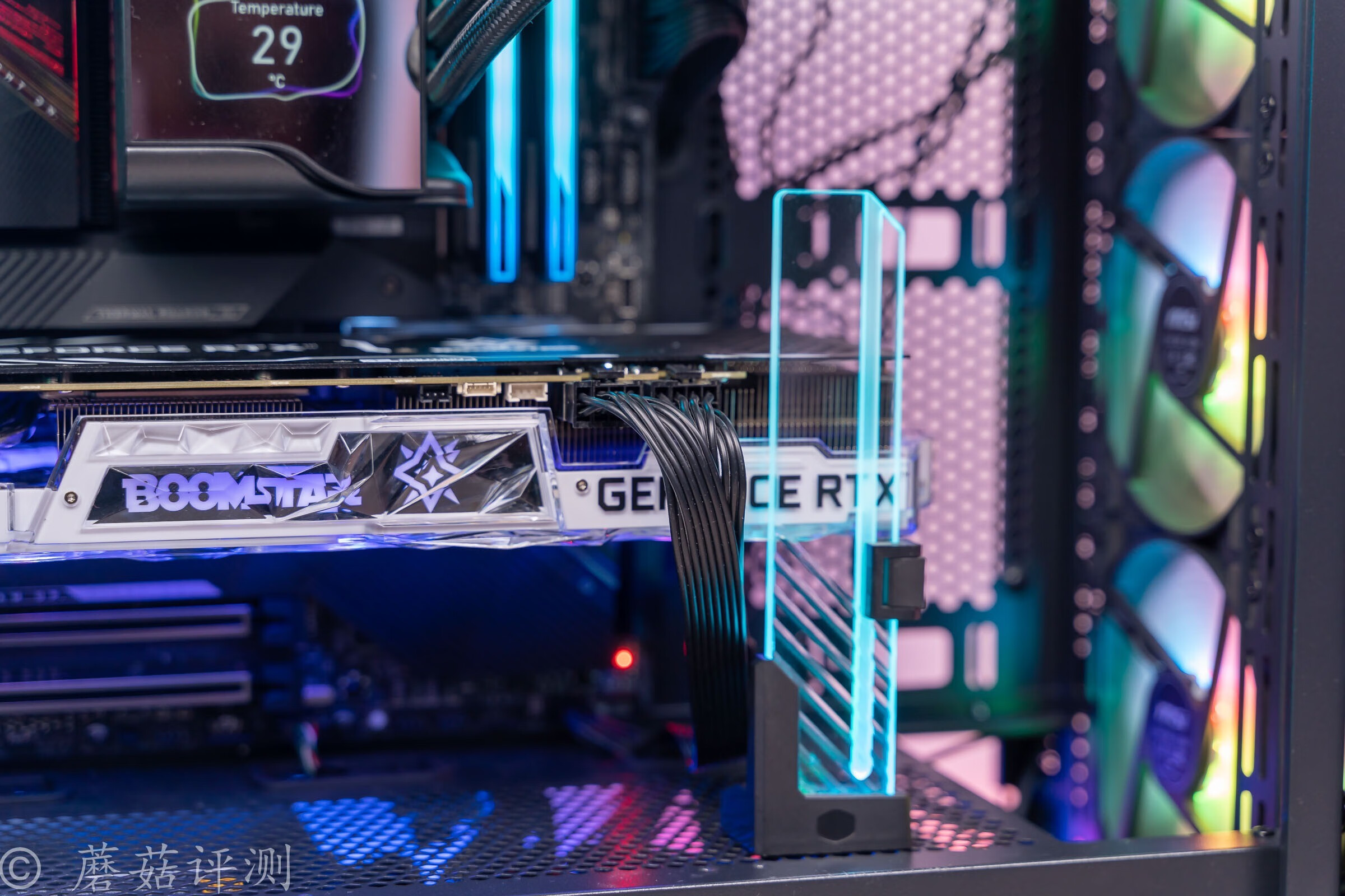 ▼细节方面,显卡的8Pin辅助供电线均为单8Pin设计,在显卡高负载的情况下,单线负载更低,更稳定。
