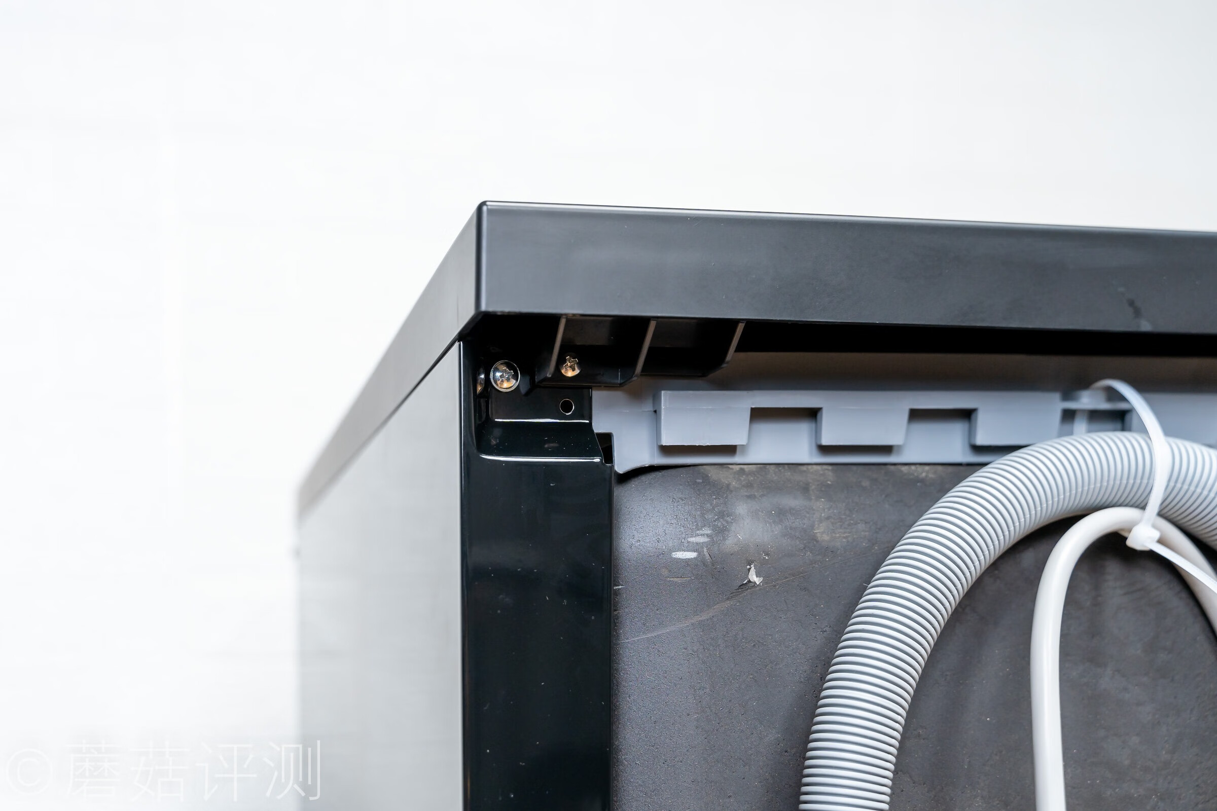 ▼洗碗机的背面是各种进水、排水管道,底部还有一个电源线。
