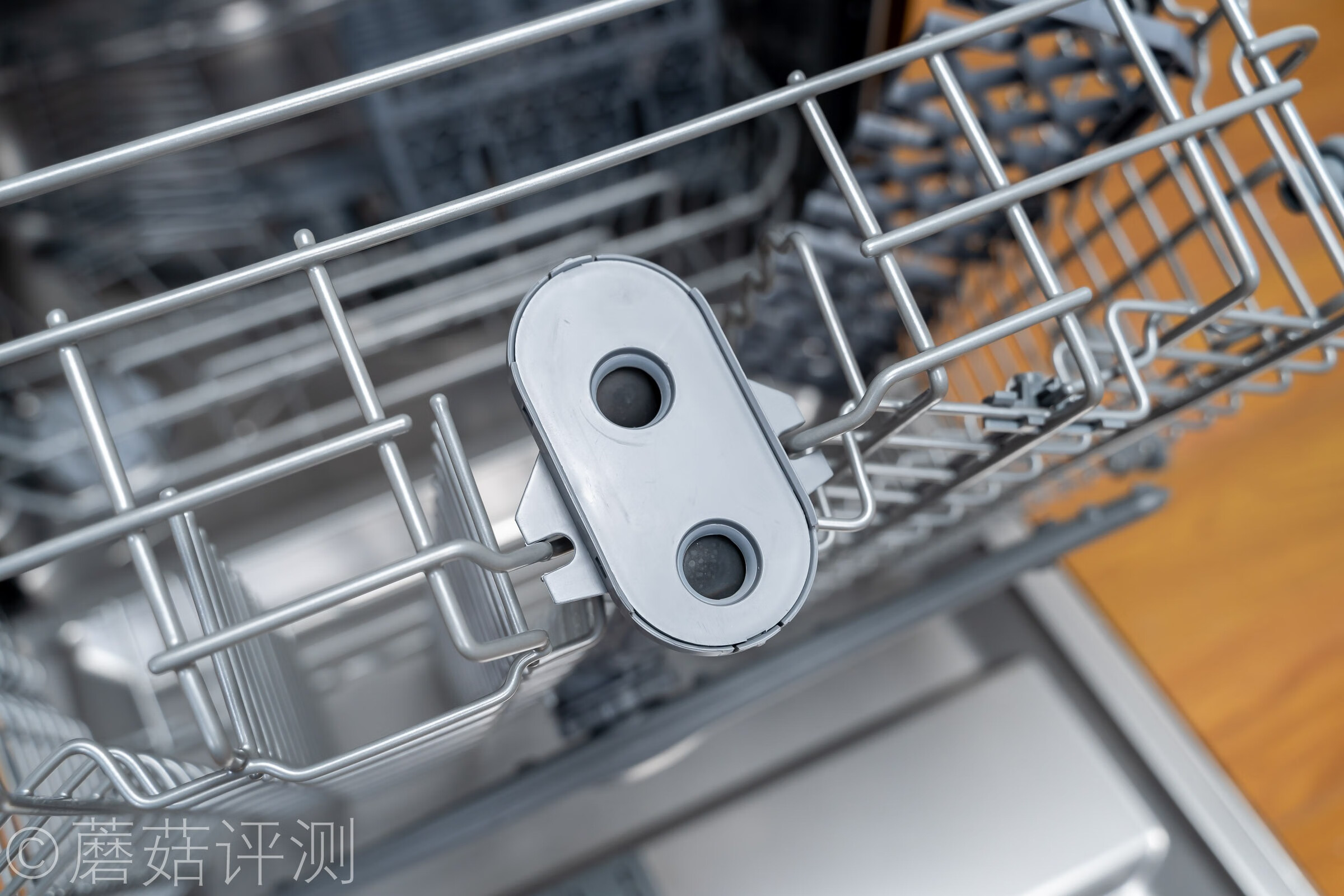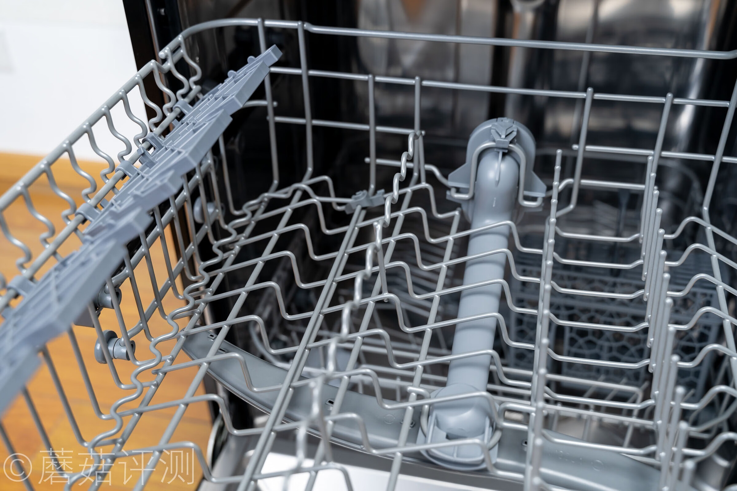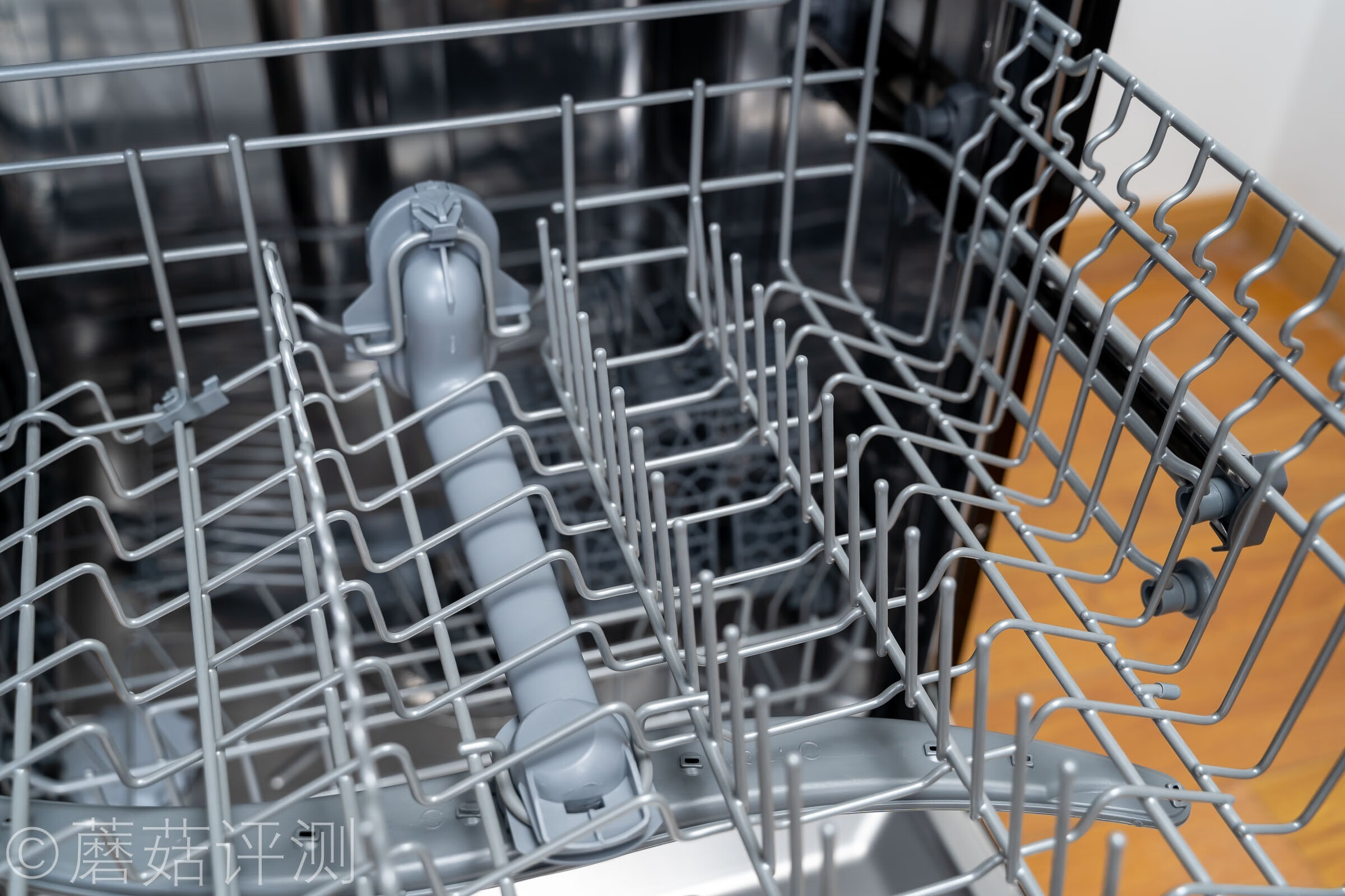 ▼靠近看看,一眼就能看到洗碗机的三喷淋系统,下喷淋支臂在最下面,中间的喷淋支臂在上碗篮下面。