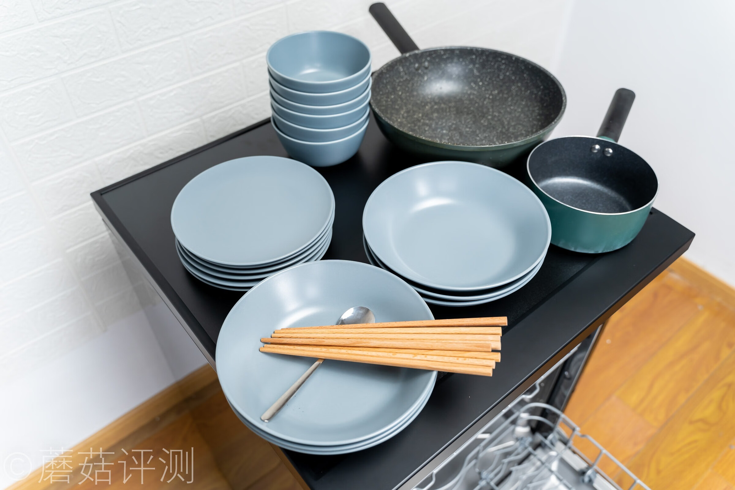 ▼蘑菇这里准备了一些碗、盘子、筷子、锅做测试,看看海尔这款洗碗机的内部空间设计如何。