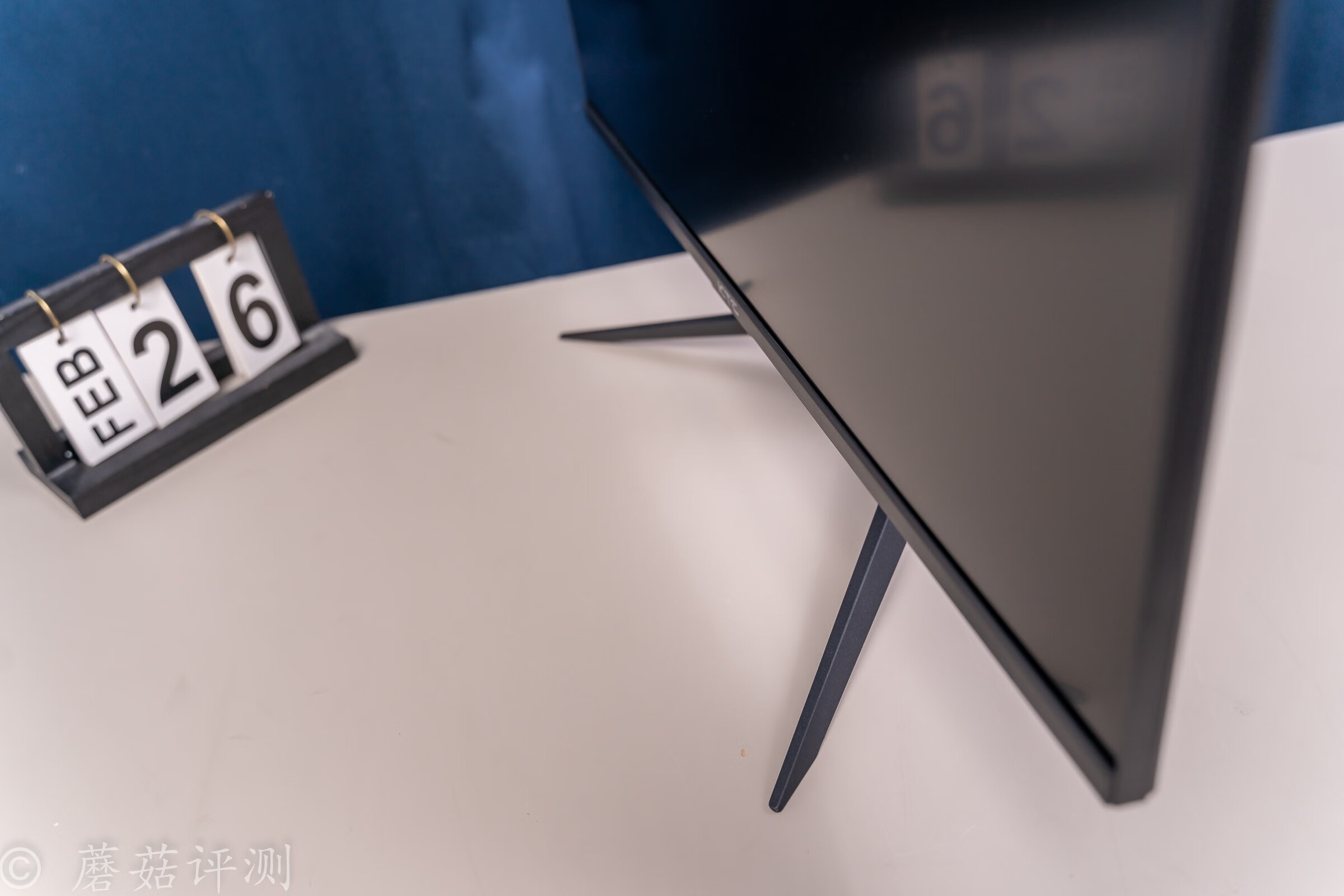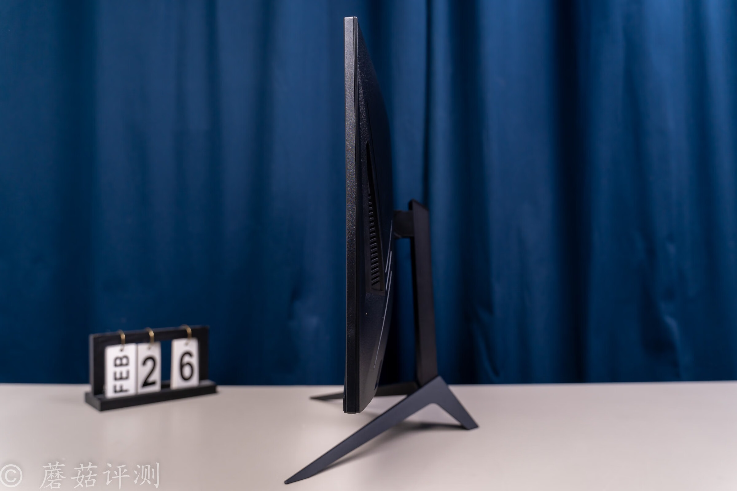▼显示器的厚度表现还行,配合支架也可以轻松立在支架的中间,挺稳定的。