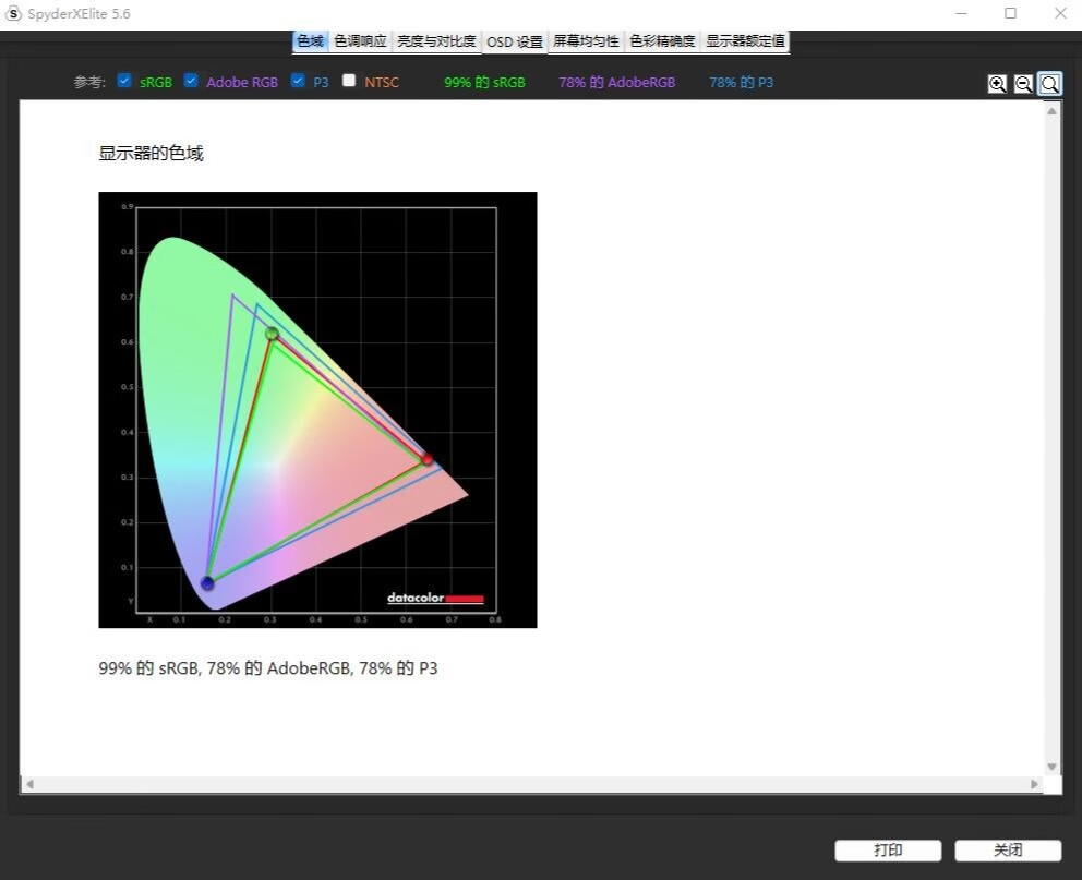 ▼色域实测,可以轻松覆盖99%的sRGB,这个表现对得起这个价位。