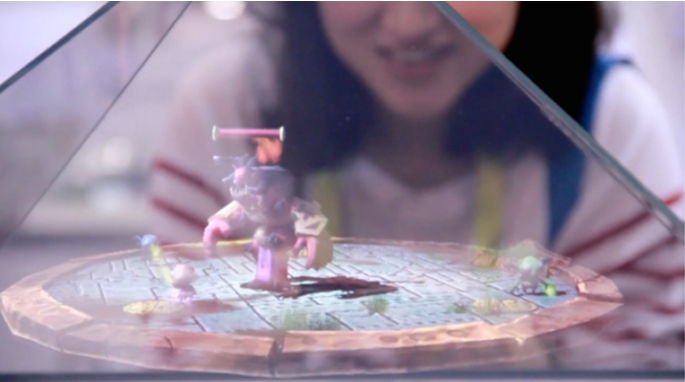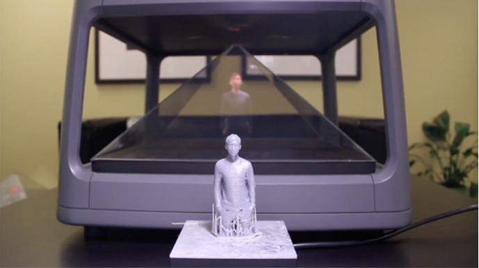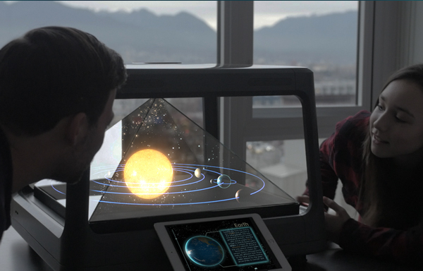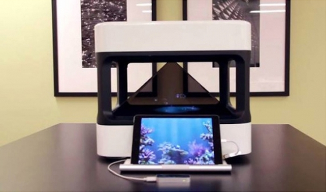 HOLUS 3D全息显示器应用了著名的佩伯尔幻像原理。具体成像过程是这样的,首先将移动数码设备与HOLUS相连接,通过相配套的应用程序为显示器选择输出图像。第二步,3D投影仪就会将虚拟影响投射到玻璃面板上,搭建出3D模型,这时候奇迹出现了,实时的3D影像画面便展现在HOLUS的玻璃金字塔内。此外用户还可以通过与之相连接的智能设备来操控HOLUS内部出现的影像。