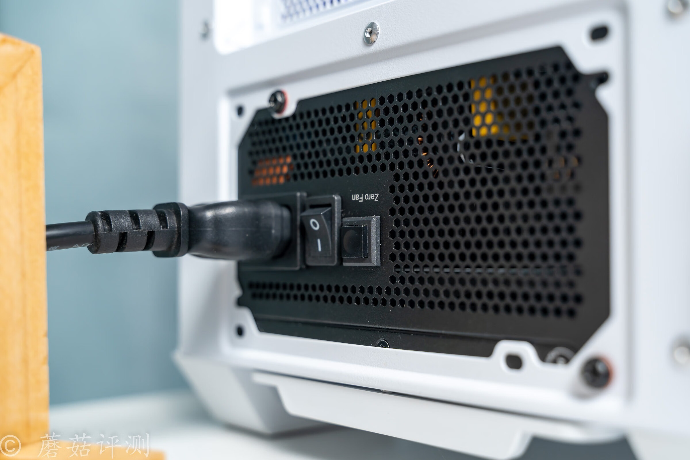 ▼电源尾部,除了有电源插口和开关之外,还有一个Zero Fan按钮,用于控制电源散热风扇。开启之后,在低负载的情况下,可以让电源散热风扇在低负载的情况下停转,日常待机的噪音表现会更加优秀。