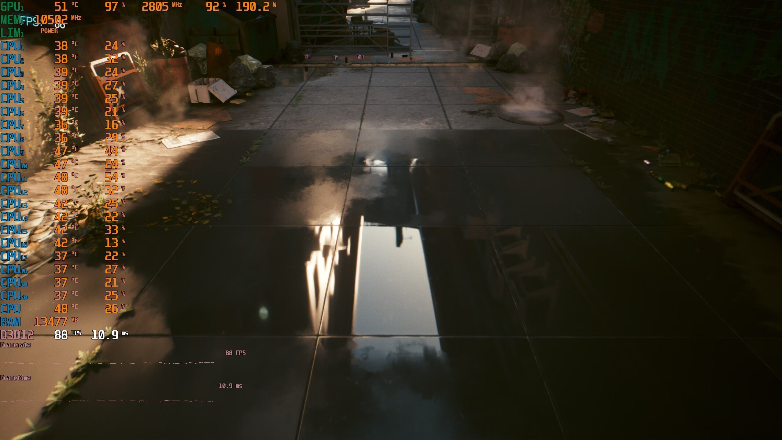 ▼赛博朋克2077,2K分辨率,光追超级特效,大力水手DLSS开自动,FG关闭。