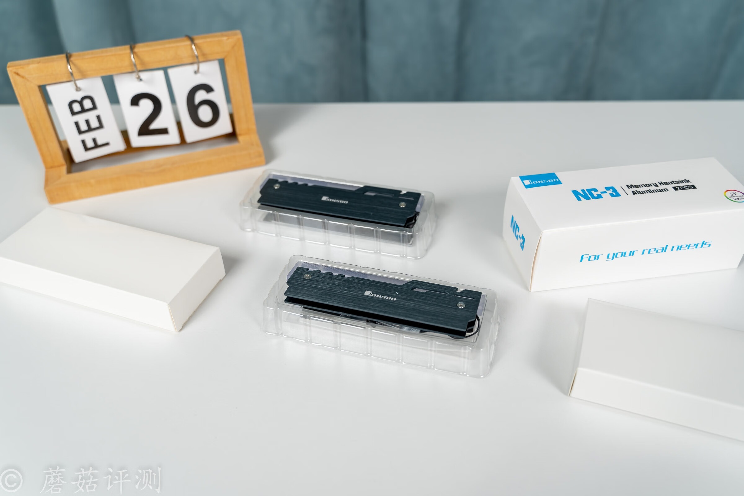 细节方面,内存马甲标配有导热垫、泡棉和增高垫,可以轻松适应双面内存颗粒的内存、单面内存颗粒的内存以及矮条。安装的过程也很简单,没什么难的,只是贴导热垫的时候需要注意下,蘑菇这里是先把导热垫贴内存金属马甲上,再安装内存条的。
