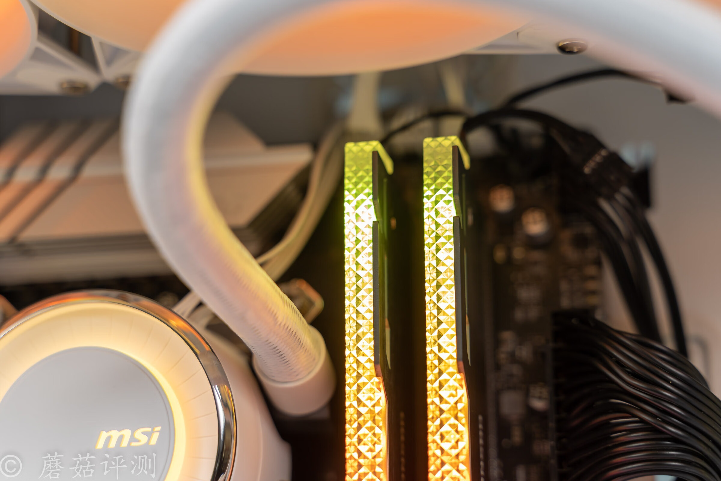 ▼内存条轻松安装到微星Z790刀锋MAX主板上,内存RGB灯带的正面颜值不错。