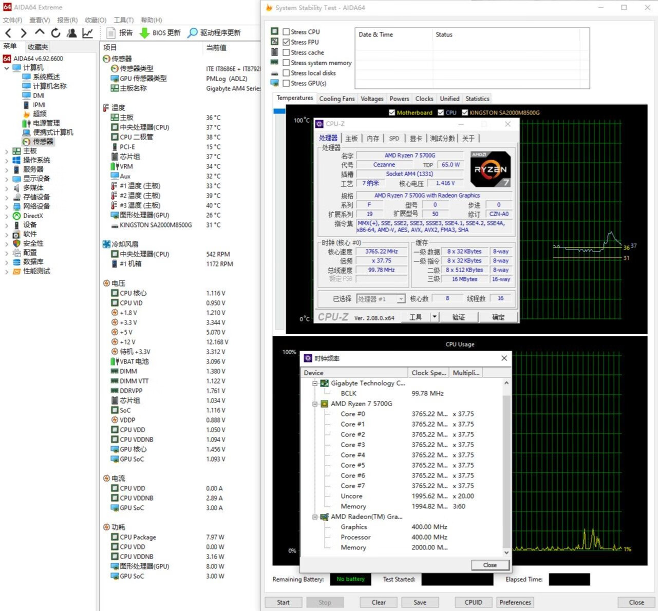 ▼AMD的5700G,8核心16线程,三级缓存16MB,硬件规格不错。