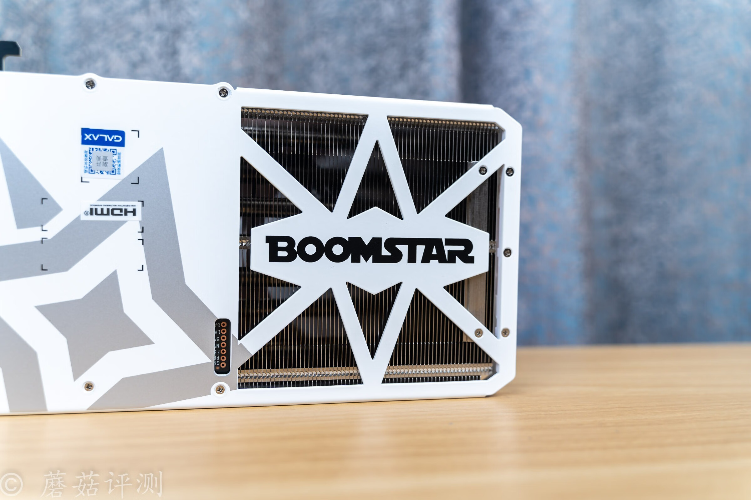▼显卡尾部是熟悉的风扇罩和显卡背板朝中间靠的设计,但由于影驰这张RTX4080 Super星曜OC显卡的厚度足足有三槽半,因此中间部分还留了不少的散热鳍片的空间,可以清晰的看到7根镀镍热管。
