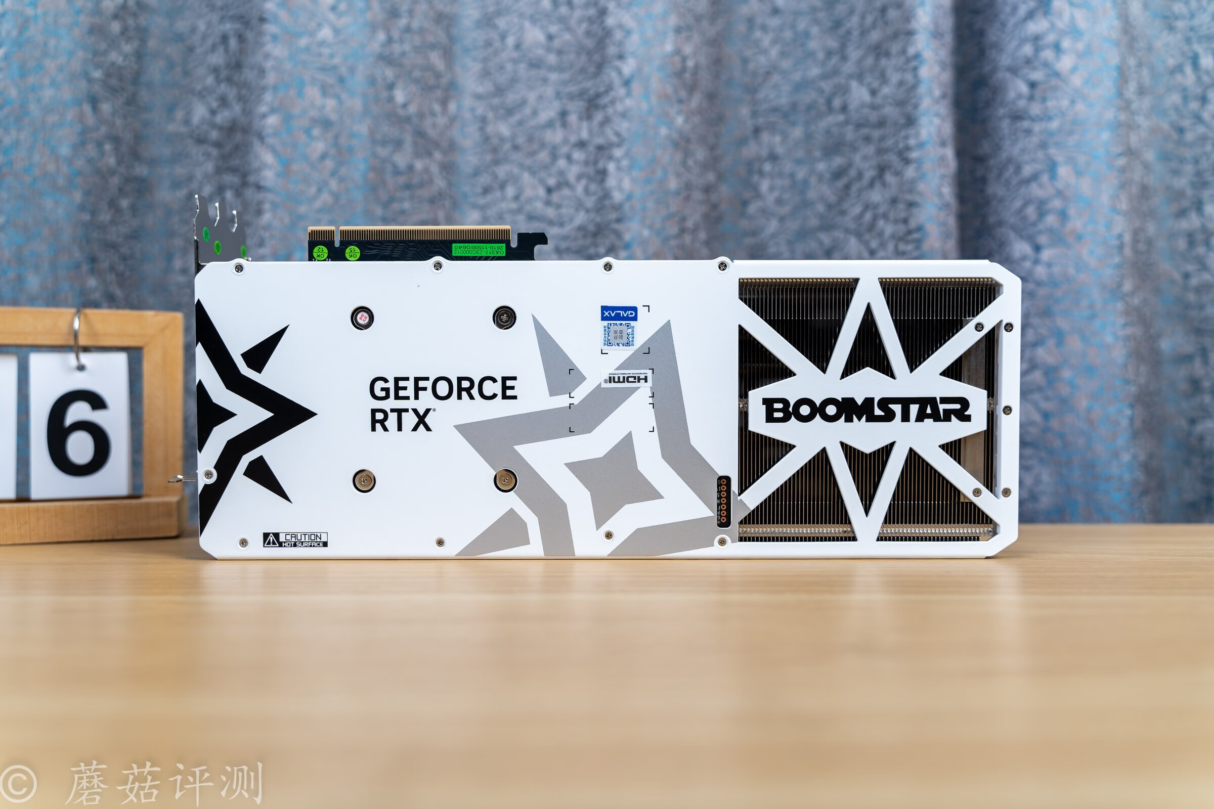 ▼显卡默认的金属背板质感很好,上面的涂装很精致,采用了黑白灰的配色,搭配白色主题的主机效果很棒。