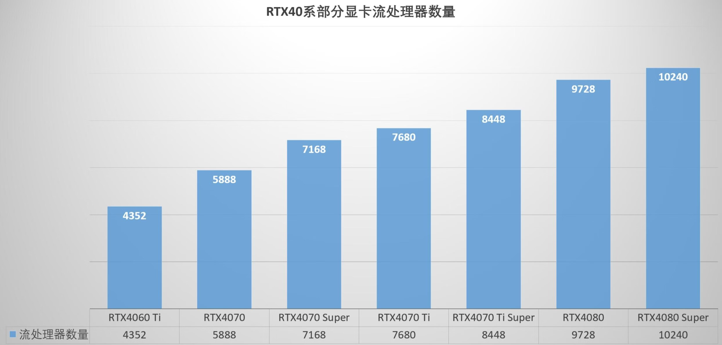 ▼简单横向对比下流处理器数量,和9728颗流处理器的RTX4080仅相差512颗,大约是5.2%左右,也就是非公显卡和旗舰级非公显卡之间的性能差距那么大!