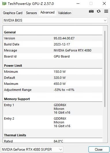 ▼默认功耗给到了320W,最大功耗可以去到450W左右,实际没有这么高。