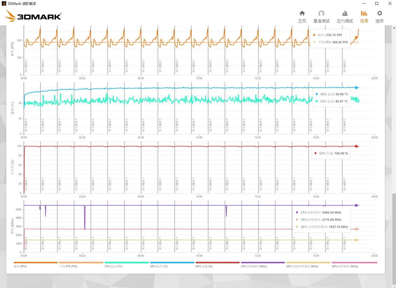 ▼跑个3Dmark的压力测试,TS模式,帧数稳定率在99.4%,非常稳定。