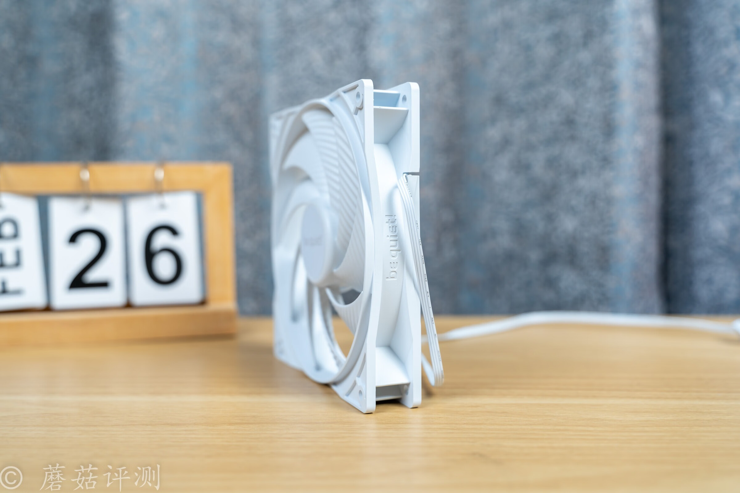 德商德静界这款PURE WINGS 3 140mm PWM白色高速版风扇的整体表现非常不错,尤其是这个白色配色的版本,给人一种非常惊艳的感觉。可能是蘑菇日常黑色的机箱风扇看的太多了,这种纯白的、无灯效的机箱风扇,给人一种明显的精致、低调的感觉。
