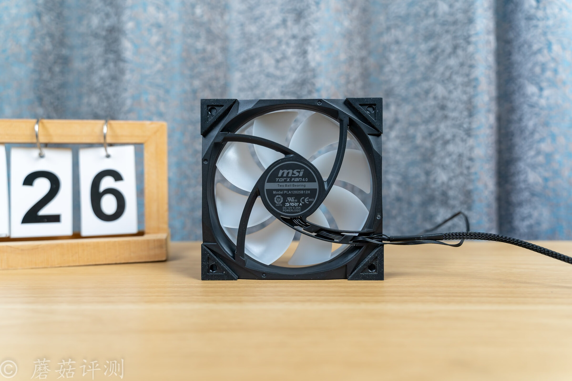 ▼冷排风扇是微星的刀锋6代风扇,轴承采用双滚珠设计,扇叶的造型也非常有意思。