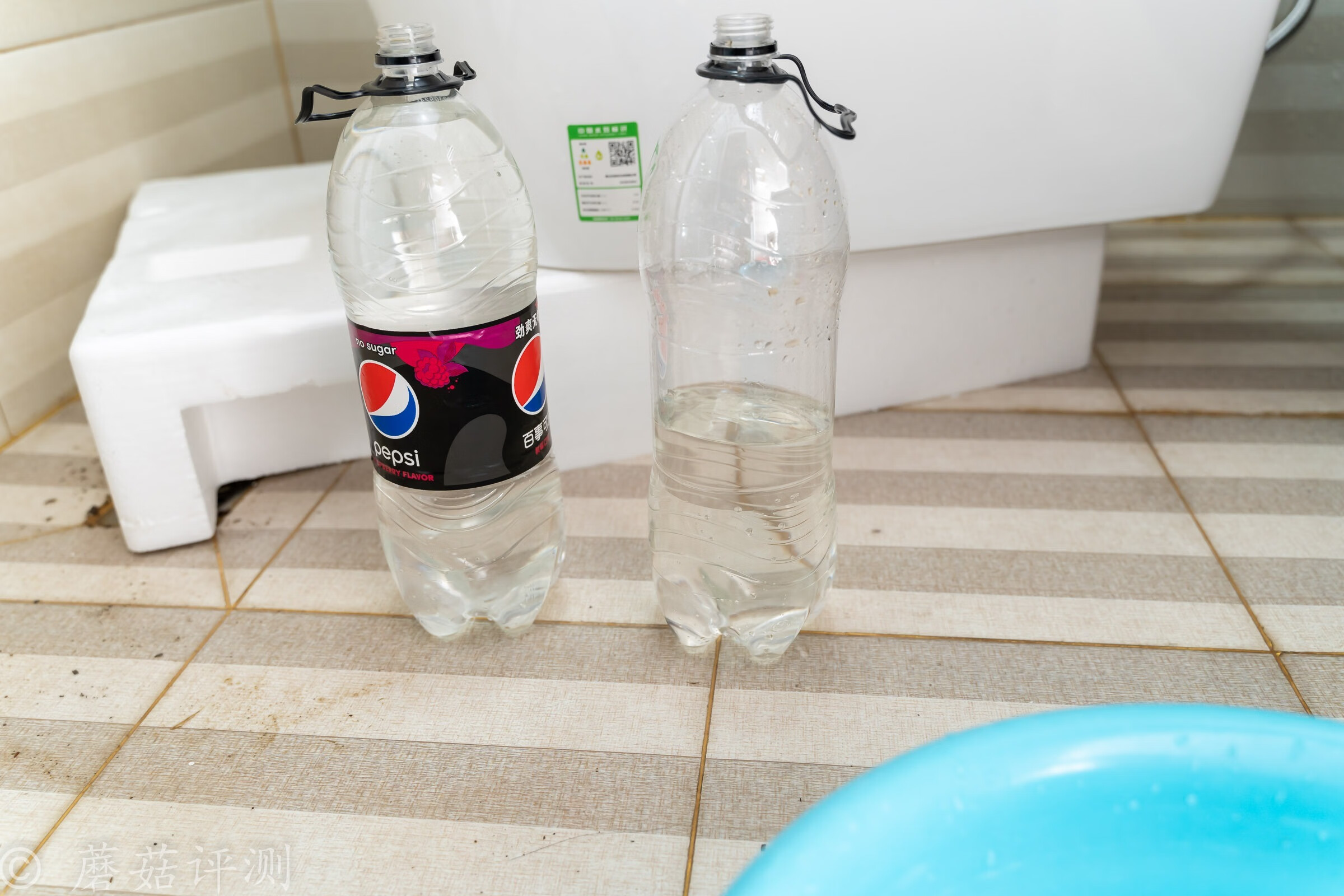 ▼大冲模式,两满瓶2L的可乐瓶,再加上一点点,大约在4.2L左右,耗水量也没啥问题,和老款Qe5的普通模式耗水一样。用相同的水量,均匀分配,实现二次冲水,冲水效果更好,还一样省水。
