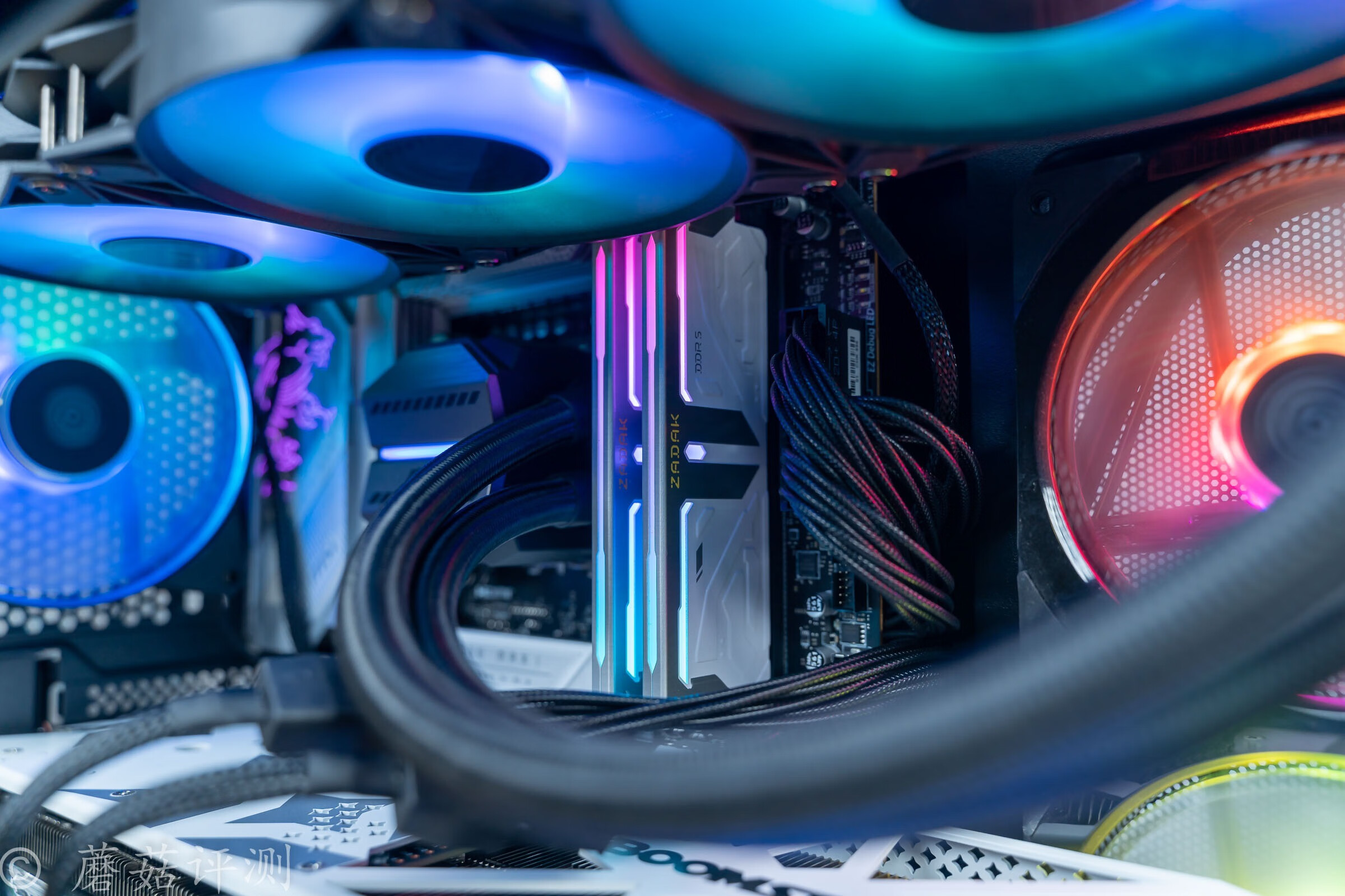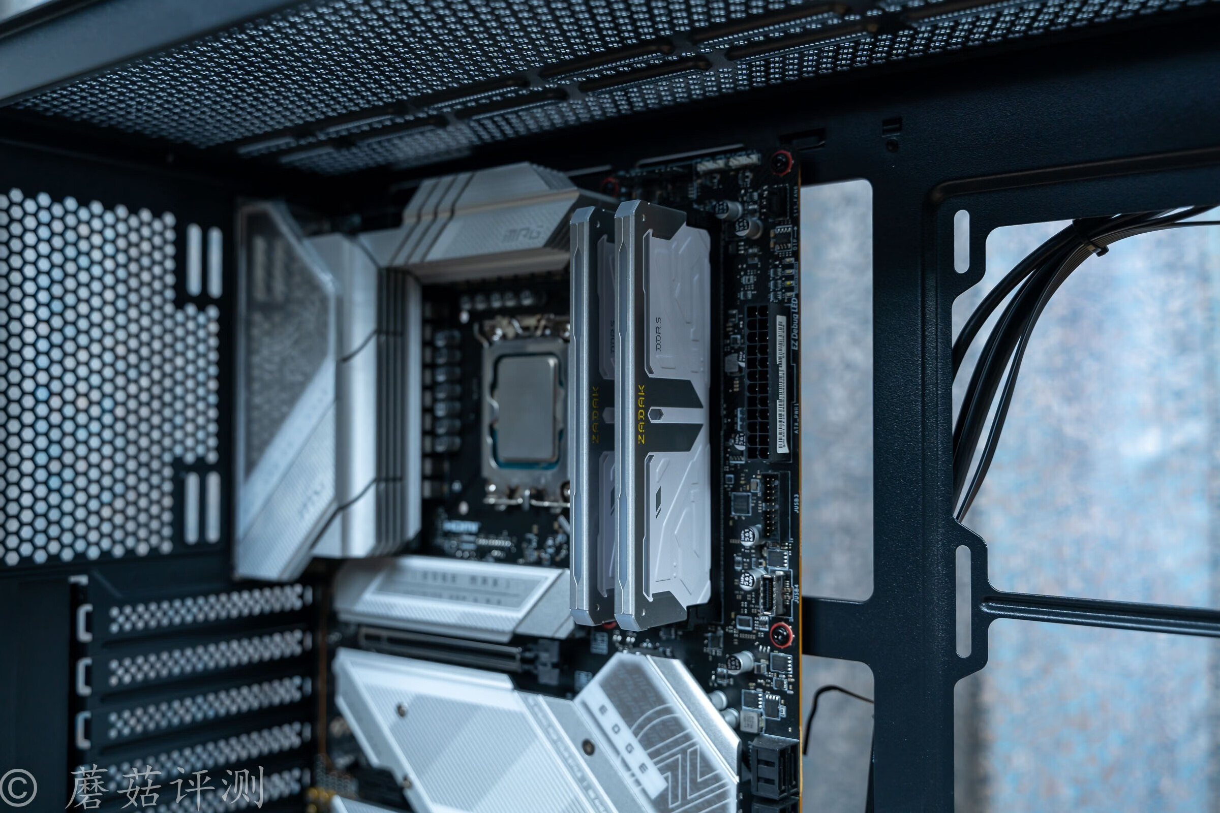 ▼双通道内存,轻松安装到主板上,这里首选2、4插槽。这套内存的金属马甲,搭配微星这块Z790 EDGE TI MAX主板,非常适合。