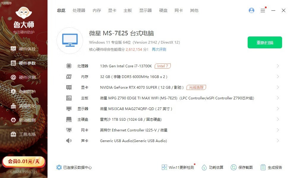 ▼蘑菇这里准备了一套13700K搭配微星Z790 EDGE TI MAX主板的配置,看下效果如何。