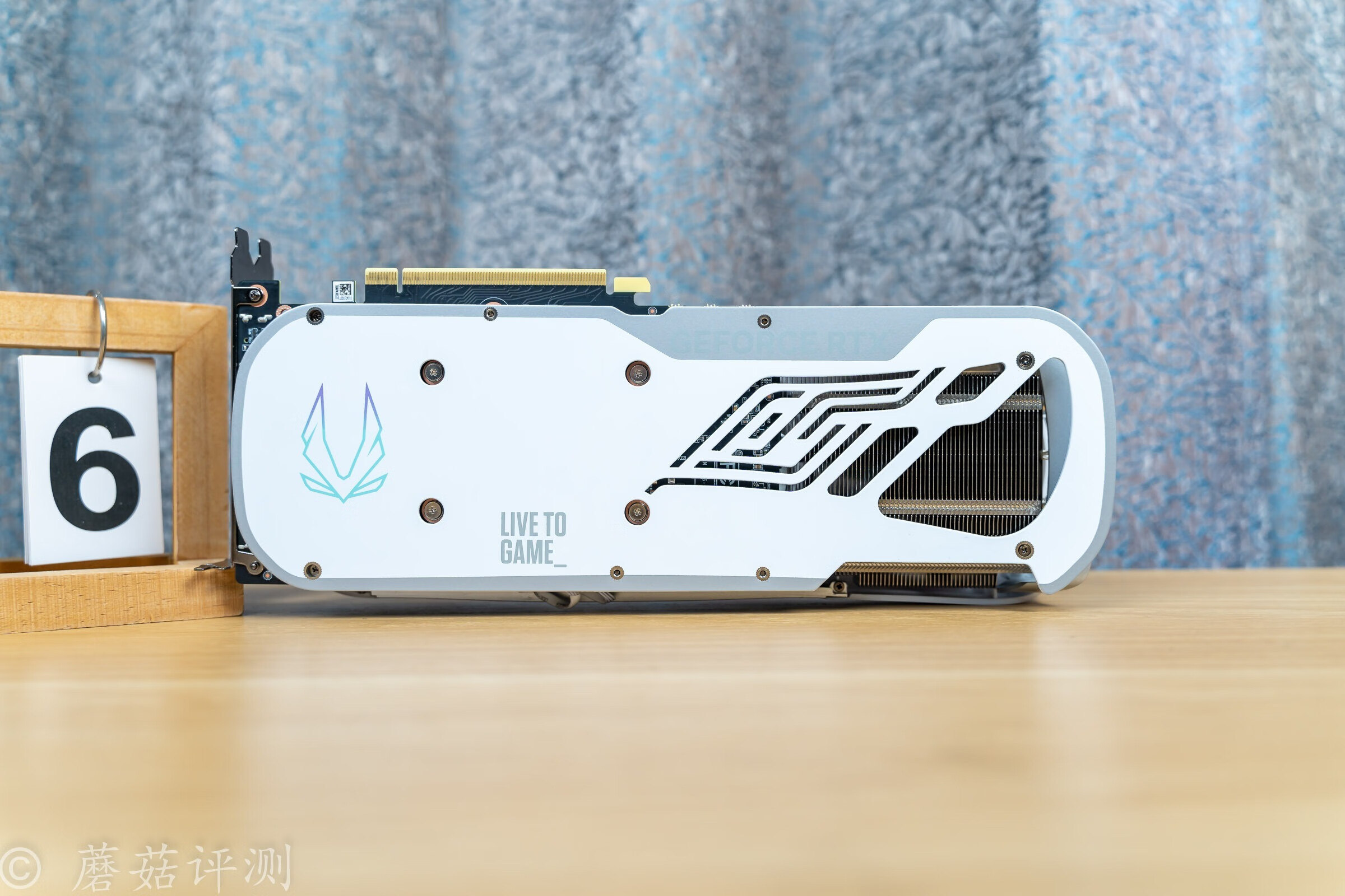 ▼白色的、金属材质的显卡背板,涂装很漂亮,视觉观感不错。