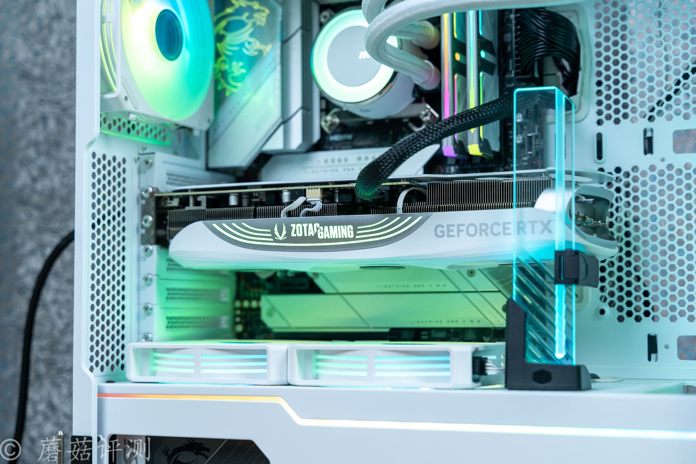 ▼给索泰这张RTX4070 Ti Super OC月白显卡供电,使用单根PCIe 5.0供电线就OK,走线和理线都非常简单。