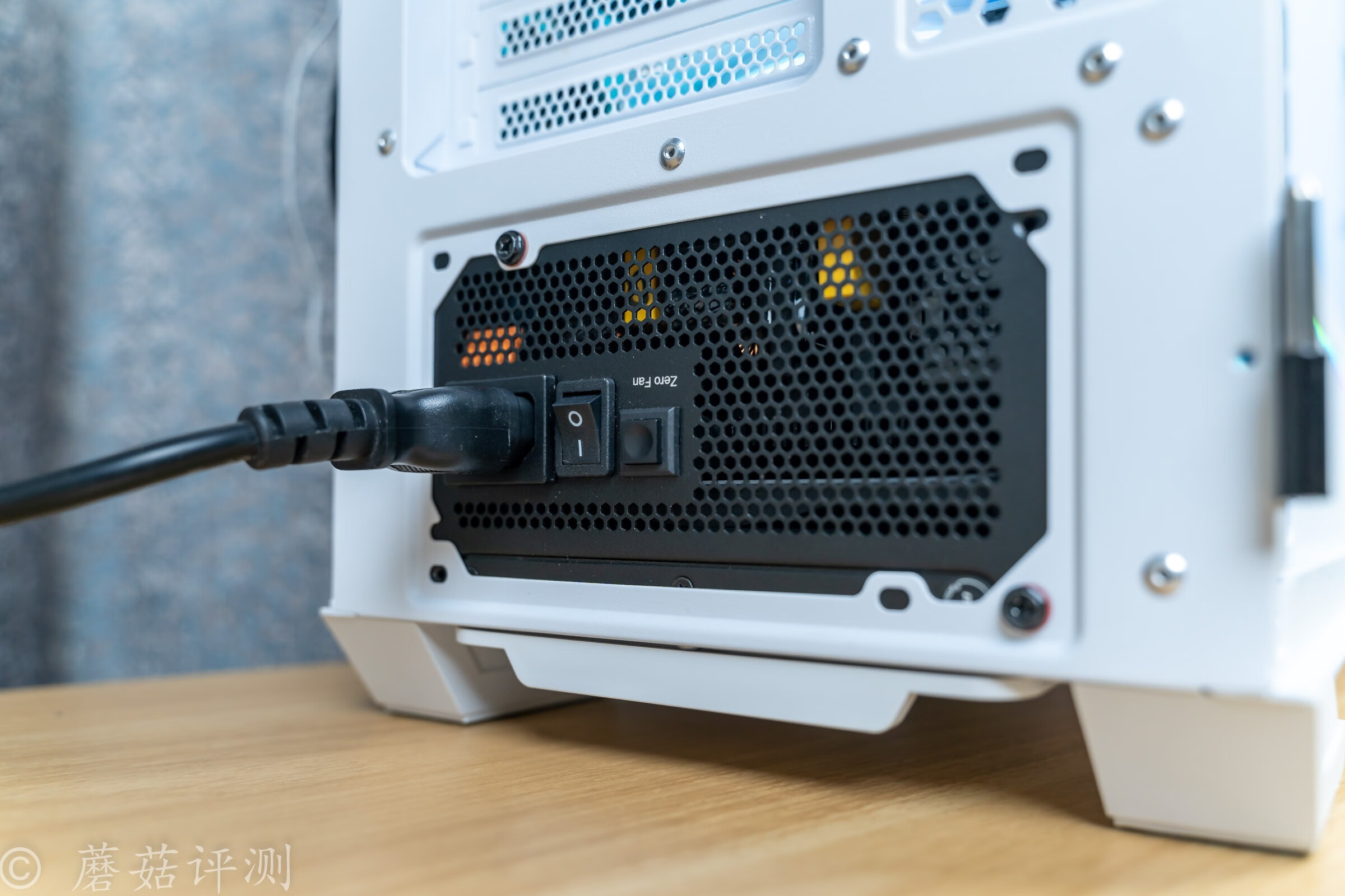 ▼电源尾部除了电源插口和开关之外,还有一个Zero Fan按钮,可以控制电源的散热风扇。静音模式下,电源的散热风扇在低负载的时候会停转,进一步降低待机噪音,更安静。