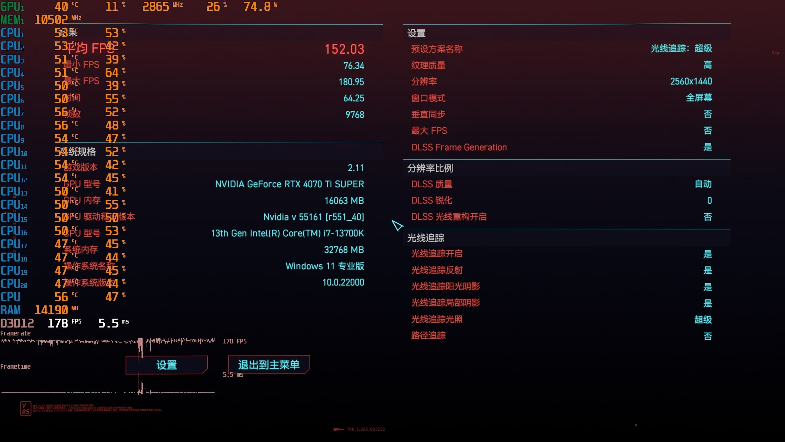 ▼最后的整体平均游戏帧数在152帧左右,帧数很不错,2K分辨率下可以畅玩。